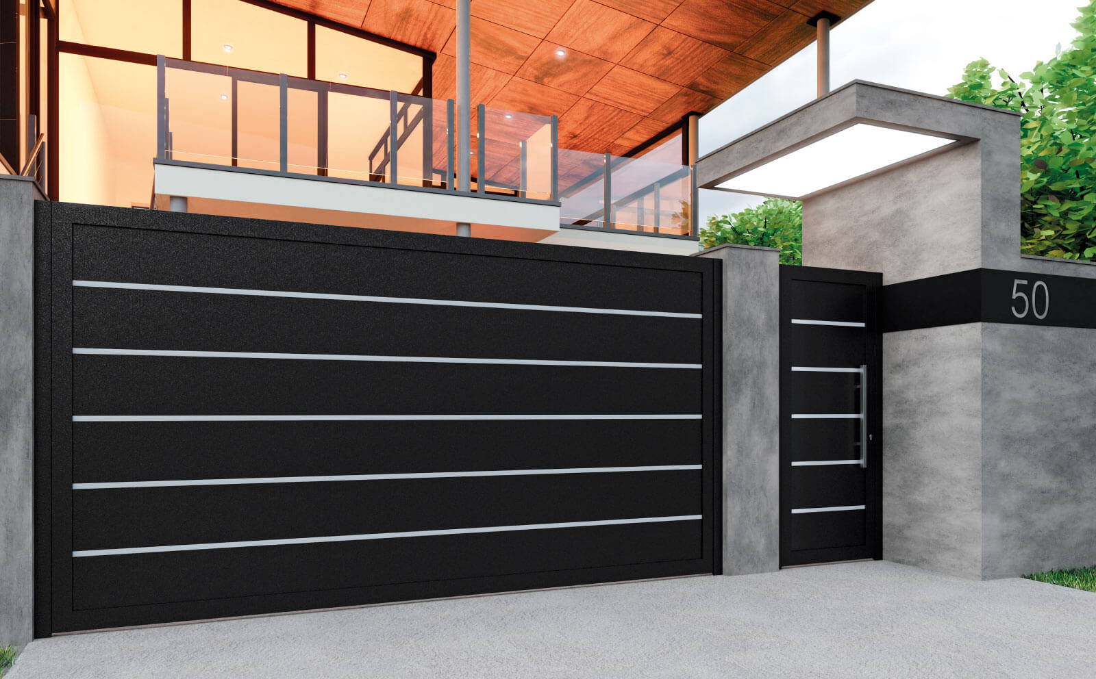 Se compone de tablones horizontales y cuenta con separación entre ellos para evitar el efecto vela. La ausencia de cercos genera sensación de limpieza en este modelo, siendo polivalente y sobretodo, con capacidad de adaptarse a cualquier estilo constructivo. Su propósito es el de cubrir fachadas de gran longitud, donde la estética de la misma es solventada con garantías.